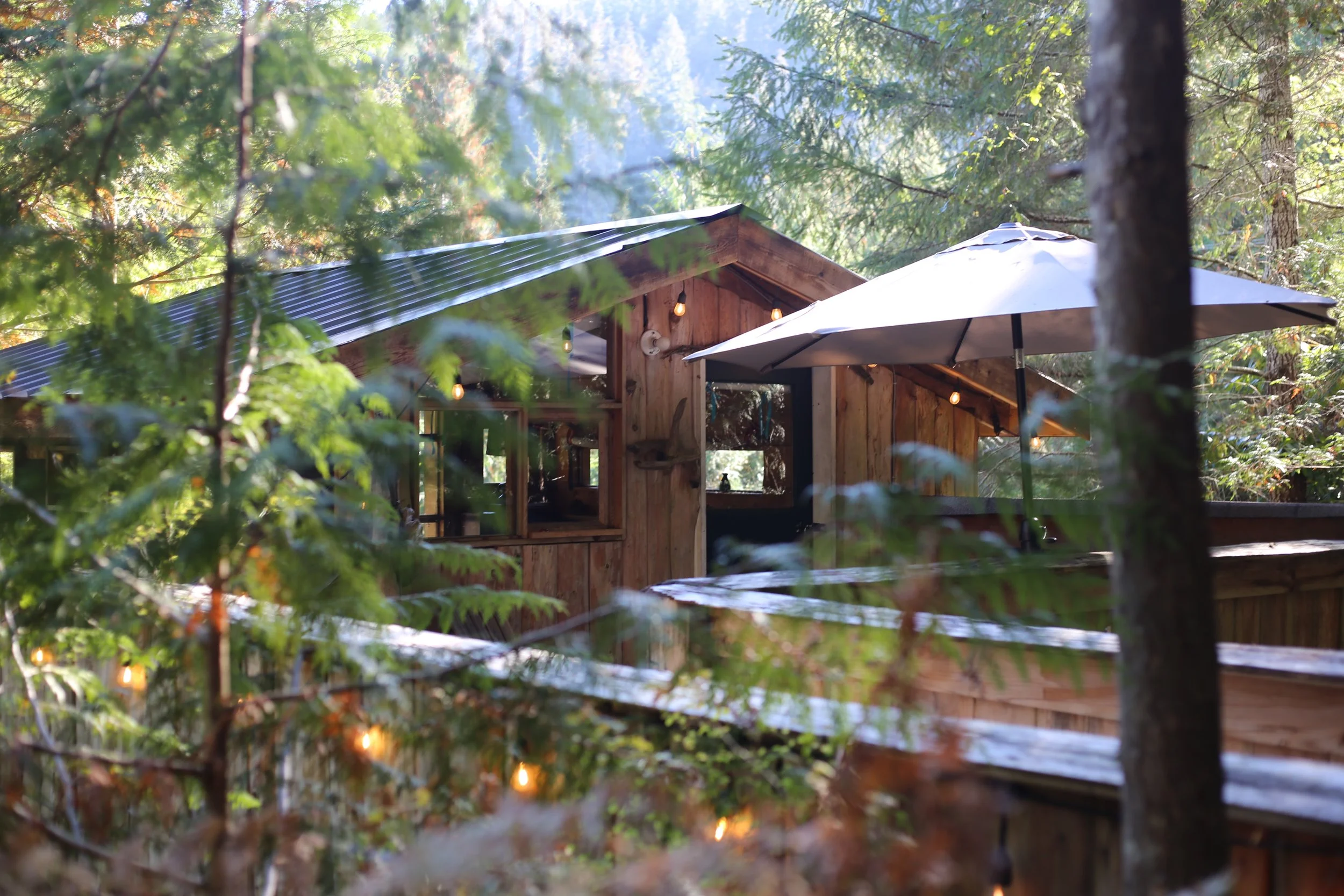 Above and to the back of the Wash House is the private deck with two Adirondack chairs facing the forest. Completely secluded and peaceful.